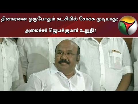 Home > Puthiya Thalaimurai > தினகரனை ஒருபோதும் கட்சியில் சேர்க்க முடியாது: அமைச்சர் ஜெயக்குமார் உறுதி! Politics Puthiya Thalaimurai தினகரனை ஒருபோதும் கட்சியில் சேர்க்க முடியாது: அமைச்சர் ஜெயக்குமார் உறுதி! Politics Puthiya Thalaimurai 03:09