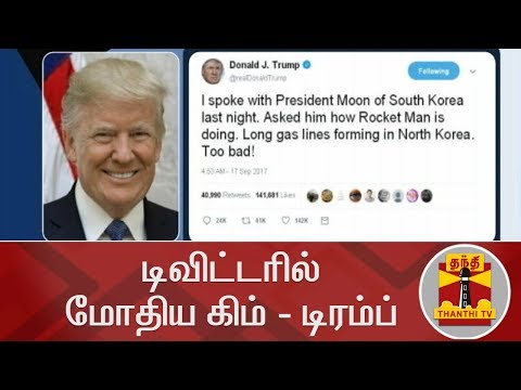 Home > Thanthi TV > டிவிட்டரில் மோதிய கிம் - டிரம்ப் | Inaiya Thalaimurai | Donald Trump | Kim Jong-un Politics Thanthi TV டிவிட்டரில் மோதிய கிம் - டிரம்ப் | Inaiya Thalaimurai | Donald Trump | Kim Jong-un Politics Thanthi TV 03:54