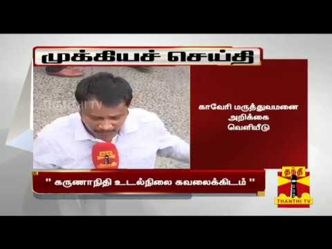 Home > Thanthi TV > கருணாநிதி உடல் நிலை மிகவும் கவலைக்கிடம்: Politics Thanthi TV கருணாநிதி உடல் நிலை மிகவும் கவலைக்கிடம்: Politics Thanthi TV 06:18