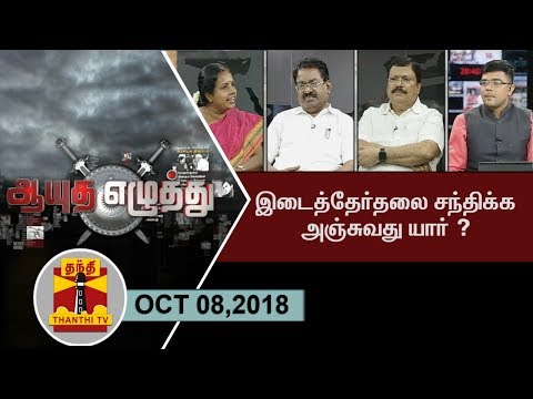 Home > Thanthi TV > 08/10/2018)Ayutha Ezhuthu : Who is afraid of by-elections? Politics Thanthi TV 08/10/2018)Ayutha Ezhuthu : Who is afraid of by-elections? Politics Thanthi TV 01:35