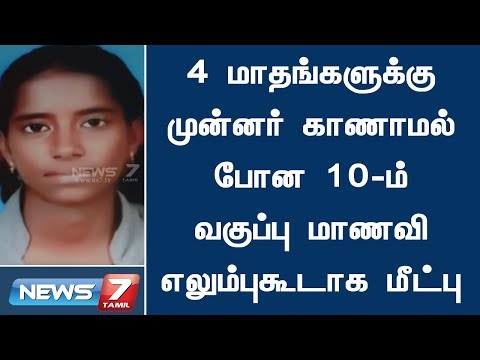 Home > Politics > 4 மாதங்களுக்கு முன்னர் காணாமல் போன 10-ம் வகுப்பு மாணவி எலும்புகூடாக மீட்பு News 7 Tamil Politics 4 மாதங்களுக்கு முன்னர் காணாமல் போன 10-ம் வகுப்பு மாணவி எலும்புகூடாக மீட்பு News 7 Tamil Politics 02:23