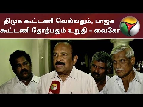 Home > Puthiya Thalaimurai > திமுக கூட்டணி வெல்வதும், பாஜக கூட்டணி தோற்பதும் உறுதி - வைகோ Politics Puthiya Thalaimurai திமுக கூட்டணி வெல்வதும், பாஜக கூட்டணி தோற்பதும் உறுதி - வைகோ Politics Puthiya Thalaimurai 20:09